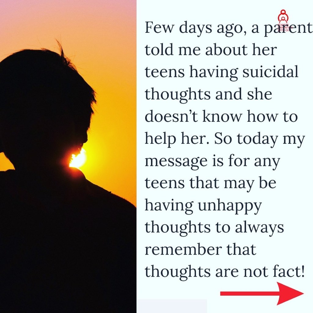 Few days ago, a parent told me about her teens having suicidal thoughts and she doesn’t know how to help her. So today my message is for any teens that may be having unhappy thoughts to always remember that thoughts are not fact!